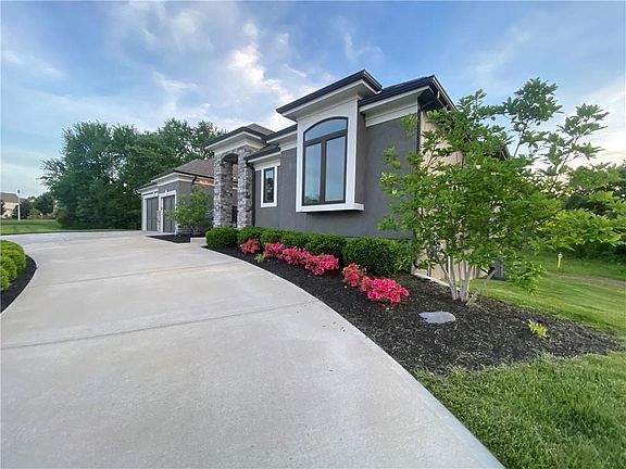 5-CAR GARAGE ON PRIVATE TREED SETTING! UNIQUE COURTYARD PATIO INVITES INTO THIS BRIGHT AND OPEN FLOORPLAN WITH VAULTED CEILING W/BEAMS. SPACIOUS AND OPEN KITCHEN WITH CUSTOMIZED CABINETS AND 9'FT KITCHEN ISLAND. LARGE DINING WITH COVERED DECK OVERLOOKING AMAZING TREED GREENSPACE. ENJOY F/P IN GREAT ROOM OR ON COVERED DECK. LUXURY AT ITS BEST! Lower level walkup/walkout bsmt w/ stone retaining wall & curved wetbar. 5 car tandem garage w/ circle driveway! Martha Stewart room perfect for prep kitchen in addition to walk in pantry. Office/Flex room with private entrance. Spacious walk in closets. Don't miss the BONUS room in lower level perfect for a sauna or workout room. Landscaper's paradise with zoned sprinkler system.