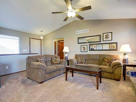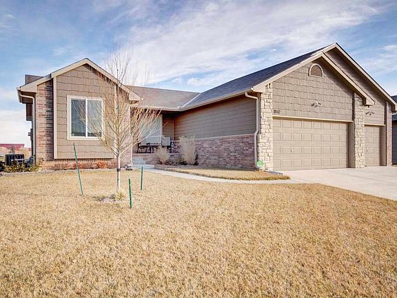 Popular split bedroom plan built by Klausmeyer. 5 bedroom, 3 bath ranch home in Eagles Nest, Maize School District. Very open floor plan, living room has wood burning fireplace and vaulted ceilings. Kitchen is open and has eating bar and a walk in pantry. Master is spacious with very nice master bath and closet. The basement finished in 2020 with 2 additional bedrooms, bath and family room. Enjoy the 3 car garage, sprinkler system and irrigation well. This home is in excellent condition.