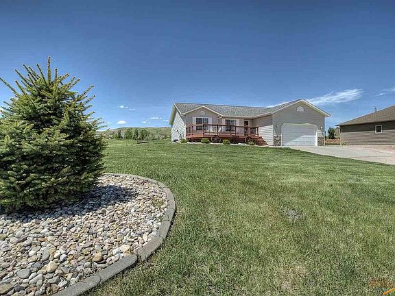 This well-cared for home has plenty of elbow room and is located just outside Rapid City! Main-floor living with 3 bedrooms, including a master suite, 2 bathrooms, laundry, and open/vaulted living room, dining room and kitchen. Lots of room for additional equity or storage in the unfinished basement. Updates include updated kitchen cabinets and flooring. With large decks in both the front and back, along with a natural gas fire pit, there are multiple options to enjoy this .65 acre property. Association walking paths and playground are huge plus in the well-established community. You will not want to miss this one. Schedule your in-person or virtual tour today!