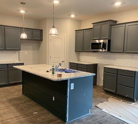 The Oak Bluff, part of the Trend Collection by Ball Homes, offers a first floor primary bedroom suite and three upstairs bedrooms that share a loft and bathroom. The island kitchen offers countertop dining, an eating area, and a storage pantry. The kitchen opens to the family room at the rear of the home. A covered patio is available on this plan, off the family room. The first floor primary bedroom suite includes a bedroom with large closet and spacious upgraded bath offers a garden tub, separate shower, and picture window.