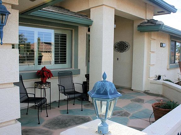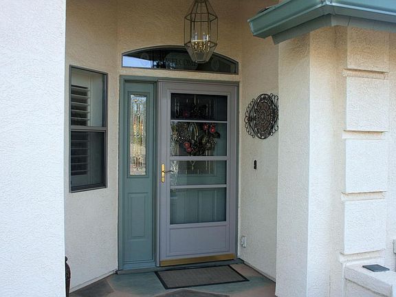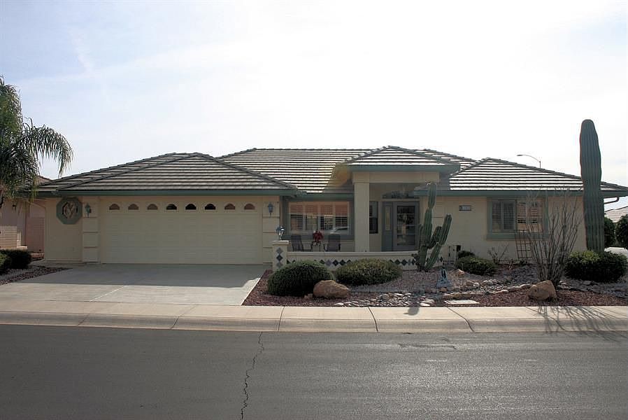 MUST SEE!!! COMPLETELY FURNISHED! NEW flooring, NEW warm, neutral interior paint. This CORNER lot home features 2 security doors (one w/glass panes for winter), tubular skylights in kitchen, hall & master bath. Plantation shutters, French doors to back patio from Great Room and Master Bedroom, upgraded oak cabinets, double oven, roll-out drawers, instant hot water at kitchen sink & soft water system. Epoxy coated patios front and back. EXPANDED & COVERED back patio with lovely water feature. EXTRA LARGE garage to fit 2 cars and a golf cart or oversized vehicles. Garage has built-in cabinets, sink, insulated garage door, 50 AMP outlet for RV hook-up nd A/C. Home A/C is 13 seer. Extra large 6'' rain gutters and solar fan in attic. CONVENIENT ACCESS TO 60 & 202 FRWYS, SHOPPING &ENTERTAINMENT