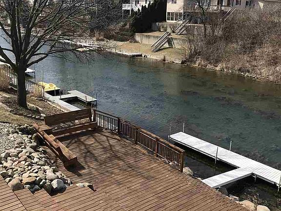 CHANNELFRONT HOME WITH A GREAT LOCATION AND LOTS OF SPACE BOTH INSIDE AND OUT. This channel is so close to the lake that only a very few minutes are needed to get to our big beautiful 3600+ acre lake which is Indiana's largest! This home is easy to get to from the north, east, south or west and is located in an area of very nice homes. With a lower level walkout onto great open and spacious decks and ever so close to your boat and the water, you'll quickly recognize that this home is ideal for both lake living and family enjoyment. Along with the decks and patios on the exterior, the interior reveals an open concept, open stairway, main floor wood flooring, hard surface counter tops, stainless steel appliances and both main level and lower level kitchens. The convenience of this home in all aspects is unsurpassed. This home is an all season one on this all season lake with nothing overlooked nor spared in its newer construction (2016) and design.