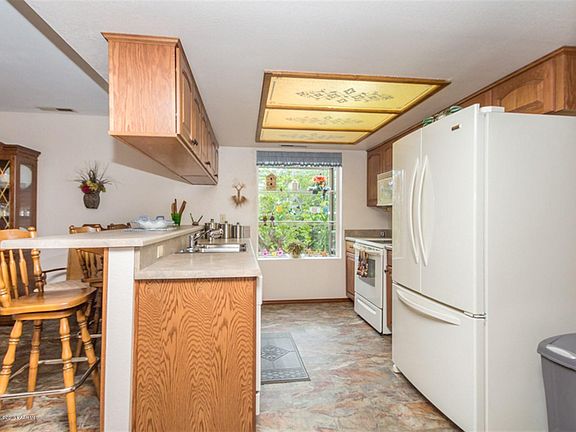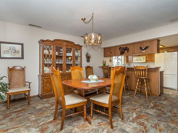 Very well maintained home in Prescott Country Club. The living room offers a gas fireplace and large windows to take in the fantastic views. Enjoy dinner in the formal dining area or casually at the kitchen breakfast bar. Three bedrooms, 2 baths (master is 3/4 bath & has dual sinks). Upgraded vinyl flooring & carpet throughout. You'll love the bonus Arizona room for added comfort and relaxation! Enjoy the wonderful mountain & golf course views from the gorgeous covered deck. Mature landscaping includes fruit trees; 2-car garage and full RV set-up; vinyl siding provides easy maintenance. Centrally located, close to shopping, schools, medical facilities and entertainment venues. This home won't disappoint, come check it out today!