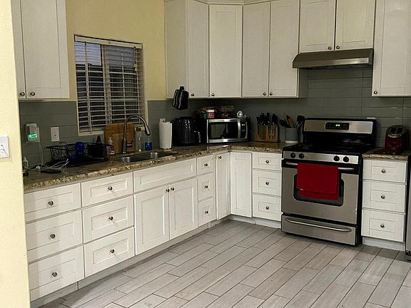 Updated kitchen and bathrooms. Central air. Tile and hardwood throughout. 1 bedroom is carpeted. Owner pays for all utilities. Water, trash, gas, electricity and internet (200Mbps). Back house has own modem. No shared internet. First and last month rent due upon leasing. Access to gated pool area. Owner is building BBQ area and fire pit. Lots of room for kids to play. Yard completely fenced in. Shared yard with owners of front house. Background and credit check required.