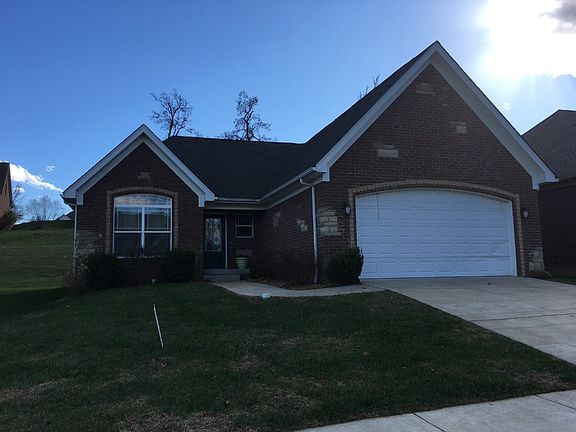 Arts and crafting design all brick with unique open plan and high ceilings. Living room flows into eat in kitchen with stainless steel appliances. Master bedroom has door leading outside to extra large patio structural cement and electric run for hot tub. Master bedroom also has ensuite bath. Security system! Close to Fuzzy Zoellers Covered Bridge Golf course and easy access to expressway. A must see property!