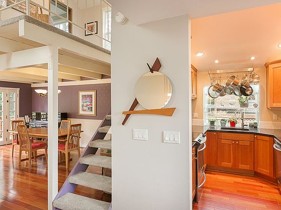 Meticulously maintained gem in a highly desirable SW Portland location. Open and inviting floor plan with unique architectural features including an office/loft space open to the living area. Adjacent trees create a natural setting and the vaulted ceilings and skylights keep the main living areas bright with natural light. Many updates- vinyl windows, new roof, new carpet, fresh interior paint. Must see!