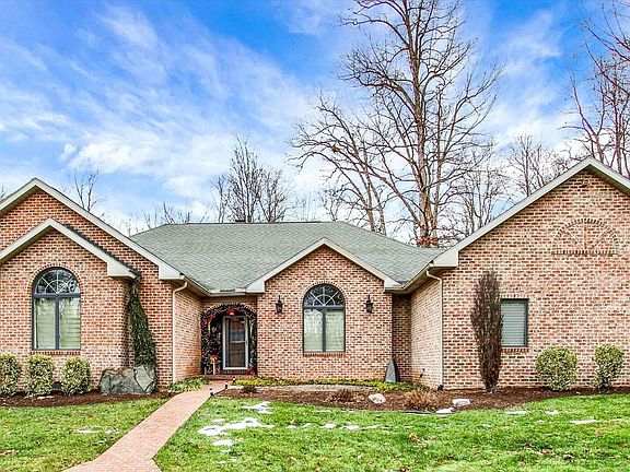 Won't disappoint even the pickiest buyer! Exquisite all-brick rancher situated on a double lot (1.2 acres) was quality built with attention to detail for easy living! Private backyard looks like a nature preserve. Watch the birds, deer and the occasional turkey gaggle. Listen to the babbling creek as you sit by the firepit placed on a large hardscape area or take in the horses on the "farmette" behind. A spectacular setting for a stunning home. Enter through a breathtaking grand archway into an open floor plan with cathedral ceilings, wood floors, skylights and palladian windows that allow extraordinary natural light and unobstructed views of the backyard. Home is ideal for entertaining. Gourmet kitchen was remodeled in 2019 with new GE appliances including a gas range, 3 ovens, granite countertops, island and classic white subway tile backsplash. Home boasts a formal dining area as well as a nook (both with chandeliers). Wood floors flow through the great room, kitchen, hallway, powder room and extra large laundry room with raised front loading washer & dryer complete with upper and lower cabinets and countertop space. . Great room shows off an 18' brick-hearth, wood-burning fireplace. Primary bedroom suite appointed with crown molding, 2 custom walk-in closets, mirrored exercise/hobby room and luxury bathroom with two raised vanities, jetted soaking tub and tile walk-in shower for 2. Second bedroom suite has vaulted ceilings and a shared "Jack and Jill" bath with another spacious bedroom. Totaling 3 bedrooms, 3.5 bathrooms! Lower level (could easily be converted into separate living quarters) hosts a family room loaded with "Atmos" speaker system and a modern linear gas fireplace, sitting room, office and another full bathroom with walk-in shower. Unfinished area has 30' of built-in shelves for storage. New natural gas furnace and A/C installed in 2017. Home is perfect or those who want single story living, easy entertaining and relaxing in the great outdoors.