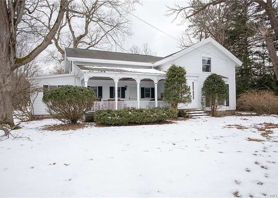 11515 Bullis Road; If these walls could talk! This farmhouse has endless potential & is situated on 5.3 private acres.. Your yard boasts a gunite pool, outdoor bar, stage, & detached garage w/loft storage. Inside is a mixture of original character & charm, combined with some modern updates. Two first floor baths & two first floor bedrooms. Living room has woodburning Countryside stove & leads to the bonus kitchenette & bedroom that could double as an in-law, or first floor laundry rm.The foyer is begging to be restored & upstairs has 4 bedrooms & a bonus room.The master has separate stairs upstairs & has new hardwoods & vaulted ceilings.t. Your backyard feels like a park!Could be a grand single family, or even has potential to be converted into an in-law or two family home! This location, this lot, top rated Iroquois School District! WHAT AN OPPORTUNITY WITH ENDLESS POTENTIAL!