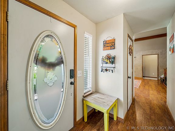 Calling all chefs!!! This kitchen has all the space & storage you need! Large eat-in kitchen with a center island, built in oven, cooktop & tile floors. The large living room with vaulted ceiling, neutral colored walls & wood veneer flooring welcomes you home every time! Down the hall you will find 2 guest bedrooms with a full guest bathroom that has a shower/bath combo & double sinks. In the primary on-suite is a separate walk-in closet & private bathroom retreat. Safe room in the garage stays with the home. Out the back sliding door, you will find a large covered patio, storage shed & fenced area for horses. New AC & Heat in 2022, New roof 2020, dishwasher 2020 & hot water heater April 2024