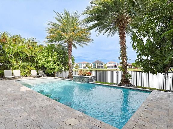 Step into the outdoor oasis where luxury meets tranquility. The pool, overlooking a serene lake, invites you to indulge in a lifestyle of leisure and relaxation. Imagine lounging poolside, enjoying the gentle breeze as you gaze across the shimmering waters, surrounded by fruit and mango trees. The expansive living spaces are adorned with high-end finishes, creating an atmosphere of timeless elegance. The gourmet kitchen, equipped with top-of-the-line appliances, is perfect for entertaining family and friends. The master suite located on the second floor, w/ new high end vinyl flooring & balcony overlooking the lake makes for a sanctuary of relaxation. The meticulously landscaped grounds add to the overall ambiance that complements the grandeur of the home.
