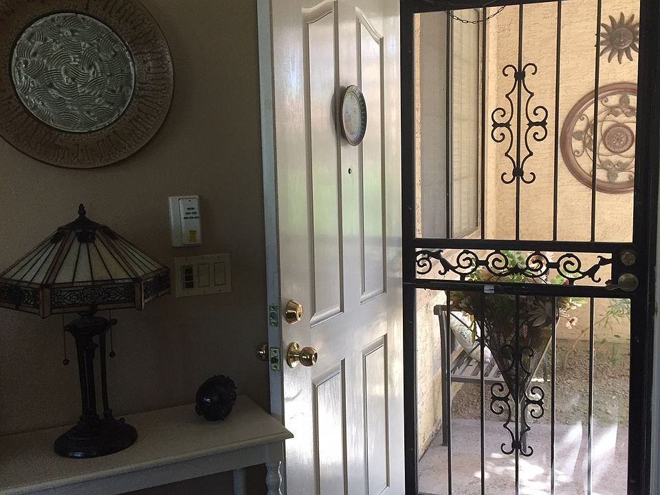 Absolutely Gorgeous ! Ground Floor Condo, with 2 bedrooms, 2 full Baths, and a 2 plus Car Garage with entrance directly into the unit. Spacious Livingroom with Fireplace. Open Concept to updated Kitchen with Granite Counter Tops and Maple Cabinets. Jacuzzi Tub and Tile surround in Master Bathroom. New walk in shower in second Bathroom, all in beautiful tile. Second Bedroom , maple wood flooring, and Tile Floors thru out the rest. Only 3 year old A/C Heat Pump System. Oversized, Quiet Covered Patio. Inside Laundry Room. Complex has a Heated Pool & Spa, Newly surfaced Tennis Courts. New Roofs on entire complex in summer of 2016. Popular Scottsdale Condo Complex, blocks to Grocery Stores, Shops, Restaurants & Library. Don't Miss This One !!!!!! Property Amenities : . 2 Bedrooms / 2 Full Bathrooms . 1,270 Sq. Ft. . 2 Car Plus Garage . Desert Landscaping . Covered Patio . Tile Flooring . Washer & Dryer Included . Kitchen Features : Range/Oven Electric; Disposal, Dishwasher, Built-in Microwave, New 2016 Samsung Refrigerator, Granite Countertops, Kitchen Island with 2 counter chairs. . Master Bedroom : Walk thru Mirror Closets on both sides. Jacuzzi Tub with Jets, Double sinks, Private Toilet Room. . Water and Sewer included in HOA. . HOA Fees : $ 235/monthly . Tax year : 2015 . Taxes : $ 1,054 . Tax Municipality : Maricopa County . Fire Sprinklers . Pets OK
