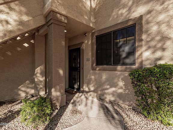 This adorable condo has been updated and is ready for immediate move in. Freshly painted, new LVP flooring, & new built in microwave. Other upgraded features include quartz style counters, garden tub shower combo, sunscreens, and new carpet in bedrooms. This is an ideal location end unit with the community pool in short walking distance. Perfect central Scottsdale location close to shopping, restaurants, and attractions. Honor Health very close by and the Mayo Clinic is just farther east on Shea.