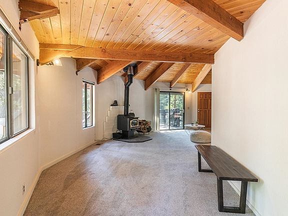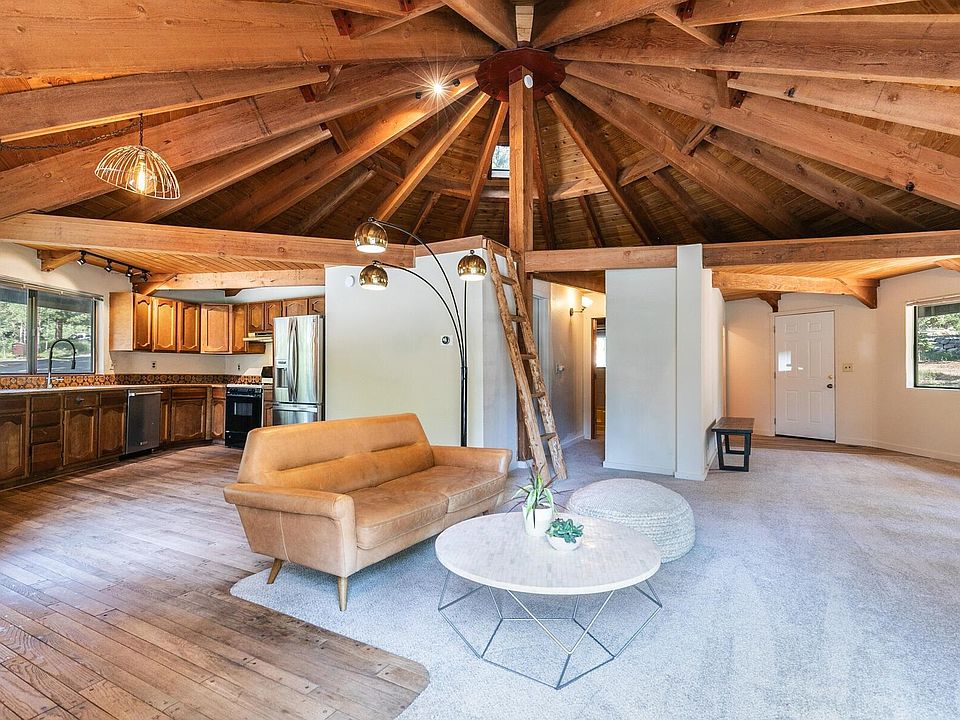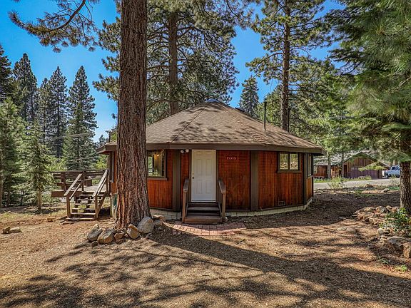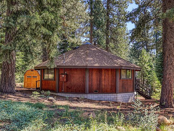 Don’t miss out on the Purple Sage Roundhouse! Nestled amongst old-growth pines and firs in the desirable Ponderosa Palisades neighborhood, this charming 70’s dodecahedron offers a unique opportunity to set down some roots of your own in Truckee. With the adjoining vacant lot available to purchase, this property is an ideal canvas for creating your dream home. Just refreshed throughout with new interior paint, new carpet and exterior stain — the cozy living room, complete with a wood-burning fireplace and high ceilings, is ready to enjoy! Assessor shows the home as a two bedroom, however, the previous owner remodeled to opt for larger living / gathering space. Experience this ideal location close to Truckee River Regional Park, Truckee Springs Park, and the Sawtooth / 06 trail system; perfect for outdoor enthusiasts and nature lovers. Plus, it’s just a quick bike ride from town. With no HOA and a great neighborhood, don't miss your chance to be part of this thriving community while putting your personal stamp on this one-of-a-kind home.