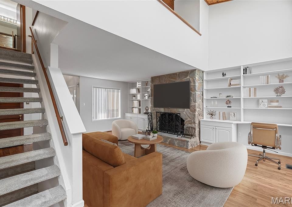 Welcome home to this spacious 2-bed, 2.5-bath townhouse in sought-after Pattonville Schools! This well-maintained home offers an uncommon 2-car garage, 2-story foyer & engineered wood floors that flow through the foyer, dining & living rooms. The main floor also features a laundry room, guest bath & a bright breakfast room that opens to the kitchen— complete w/granite counters & ample cabinet space. Enjoy soaring 16' vaulted ceiling with skylights that flood the home w/natural light near the open loft area upstairs. The MAIN FLOOR primary en-suite has vaulted ceiling & slider to deck #2, while the second bedroom is upstairs. This layout offers amazing options to give everybody their own space or a very separate home office. Both bedrooms are generously sized, with ample closet space. Step outside to enjoy not one, but two decks overlooking a flat, fully fenced backyard—perfect for relaxing, entertaining, or a pet. The unfinished basement is a blank canvas ready for your custom finish, complete w/rough-in plumbing, sump pump, & drain tile already in place. Main floor laundry. Located in a well-kept community featuring a clubhouse, pool & tennis courts—this home offers comfort, convenience & fantastic amenities. Please note: HOA does not allow a wood fireplace to be used. You can convert to gas and then use! Don’t Sleep on Your Dream Home, Sleep in It!