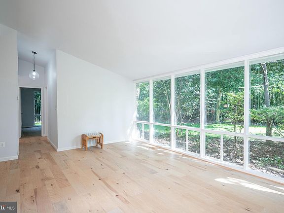 Expanded and newly renovated rare Charles Goodman-designed mid-century modern with walls of glass on premier, corner lot in Hammond Wood. Private urban oasis with mature growth with room on lot to further expand. Open, airy design with walls of glass connect inside and out. 3 bedrooms and 2 full bathrooms plus large den/bonus room that opens to secluded deck. High-end kitchen with Miele and Bosch stainless steel appliances. Open living-dining with cathedral ceilings, original wood paneling and Goodman’s signature large end-wall fireplace. New engineered wood flooring throughout. In spring, the mature azaleas burst with color. The lot also features dogwoods, Japanese maple and hemlock trees. Goodman was a visionary architect who left an enduring mark on American architecture. Goodman’s architectural style was heavily influenced by the modernist movement, which was gaining momentum in Europe during his formative years. He drew inspiration from European modernists like Le Corbusier and Walter Gropius, as well as the emerging Bauhaus movement. These influences can be seen in his commitment to simplicity, functionality, and a rejection of unnecessary ornamentation. Hammond Wood is a National Register of Historic Places-Designated neighborhood of 58 homes nestled in a tract of heavily wooded, rolling land. It is is located just north of Kensington and just over a mile from the Wheaton Metro (Red Line). A Ride On bus stop is just steps from the front door. The home is convenient to the restaurants, shopping and entertainment options in Wheaton, downtown Silver Spring, Rockville and Bethesda. NIH and the Navy Medical Center are just a few minutes away.