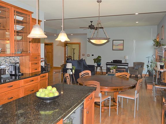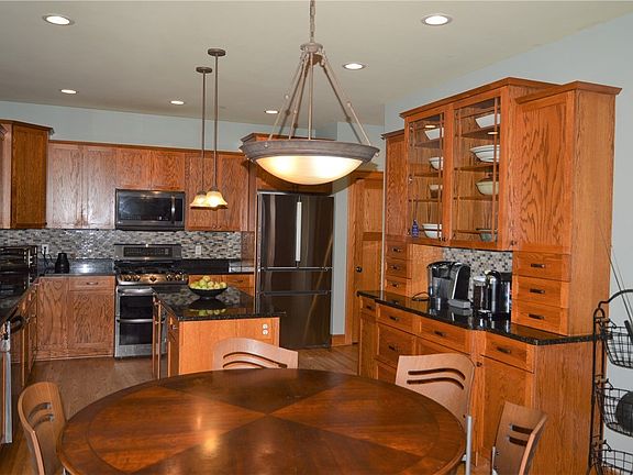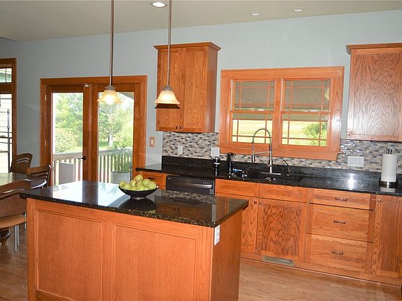 Johnston Schools Custom Mission style ranch is just a sand wedge from Beaver Creek Golf Course. Home sits on 1.572 acres (yard extends past fenced-in area) with mature fruit trees, landscaping and great garden area. Perfect home for entertaining inside or out. 1st floor is home to spacious gourmet kitchen w/tons of cabinets, granite counter tops, center island w/wine frig & SS appliances including gas range w/double ovens overlooking great room w/fireplace. Formal dining or 1st floor family room features coffered ceilings & beautiful wainscoting. Office w/French doors, 2 bedrooms that share 3/4 bath & master suite w/walk-in closet, dual sinks, separate bubble tub & tiled shower. Finished walkout features wet bar w/bar frig & microwave, HUGE family room, exercise room, 2 bedrooms w/Jack & Jill bathroom + 3/4 bath. Lower level walks out to big patio area or enjoy your beautiful yard on your covered deck. Other amenities include solid core doors, cement board siding, architectural shingles 2021, furnace 2022, plumbed for central vac (current vac is abandoned), 2 hot water heaters, water treatment system & so much more! Truly a must see home!