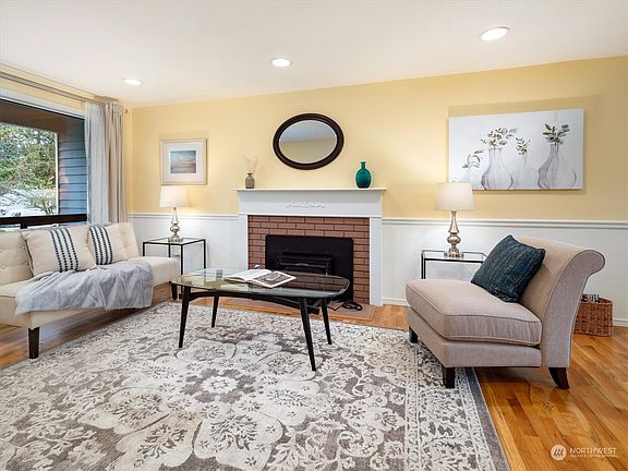 Welcome to this charming Silver Lake home! Tucked away on a quiet cul-de-sac. The open-concept living area features hardwood floors and a cozy wood-burning fireplace. The recently updated kitchen boasts quartz countertops and a tile backsplash. A bonus room with a fireplace offers extra living space. The primary bedroom includes a full en-suite bath, with two additional bedrooms, a full bath, and utility room down the hall for added privacy. The large fenced backyard features a 500-sf Azek Timber Tech deck with plenty of garden space and a shed. Enjoy the one-car garage and parking on the brick paved driveway for up to six cars or an RV. This home is move-in ready and perfectly located near shopping, schools, Boeing, and freeway access!