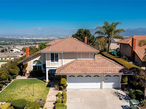 Rare opportunity to own a 5 bedroom / 3 bath family home in prestigious Phase 3 on top of Spyglass Hills with views of the San Gabriel mountains and city lights. Beautiful custom double door entry opens up to large living room and separate formal dining room. Gas fireplaces in both family room/den and living room. Plantation shutters and custom designer window blinds and wood floors downstairs. Separate light and bright Great room/den with custom fireplace. Large kitchen with breakfast nook overlooking view of yard, granite counters, stainless steel appliances, Culligan water system and beautiful brick faced built-in oven and microwave. Large main bedroom has balcony with views, plus a retreat /office. Resort like master bath with dual sinks, walk-in shower, sunken tub and mirrored closet doors and walls. Three car garage with direct access to both home and yard. Beautifully landscaped front yard with covered entryway. Pool sized backyard has a stone patio with built-in barbecue and seating, lush landscaping with fruit trees, beautiful rock pond and views of the mountains and city lights. Owner owned Solar is another great feature. Come home to one of Whittier's premier neighborhoods and ideal location close to schools, shopping, restaurants and entertainment. *Fifth bedroom is currently being used as a retreat/office.