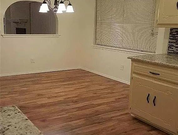 Laminate flooring throughout with tiled bathrooms and new carpet in bedrooms. Master bedroom has a master bath and walk in closet. Living room has a wood burning fire place, wet bar and nice built ins. Neutral paint colors throughout the entire home. Kitchen has new granite counter tops and back splash with lots of storage and double ovens. Bathrooms have new marble double sinks and are newly tiled with beautiful accents. Laundry room has extra storage and pantry space. Commute is 20-25 minutes to Tinker with 3 major highways to choose from so you don't have to sit in traffic. Also just 5 minutes to Lake Hefner or Quail Springs Mall. This is a MUST see!