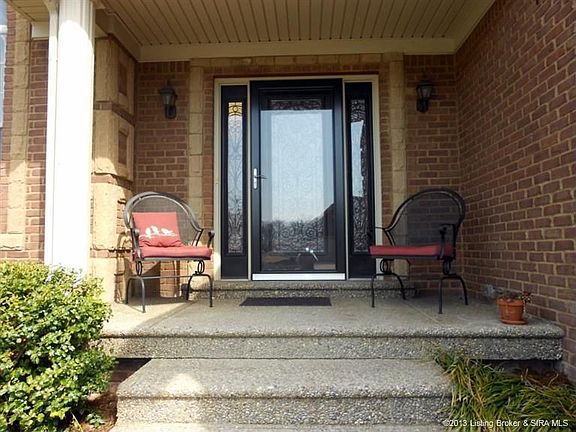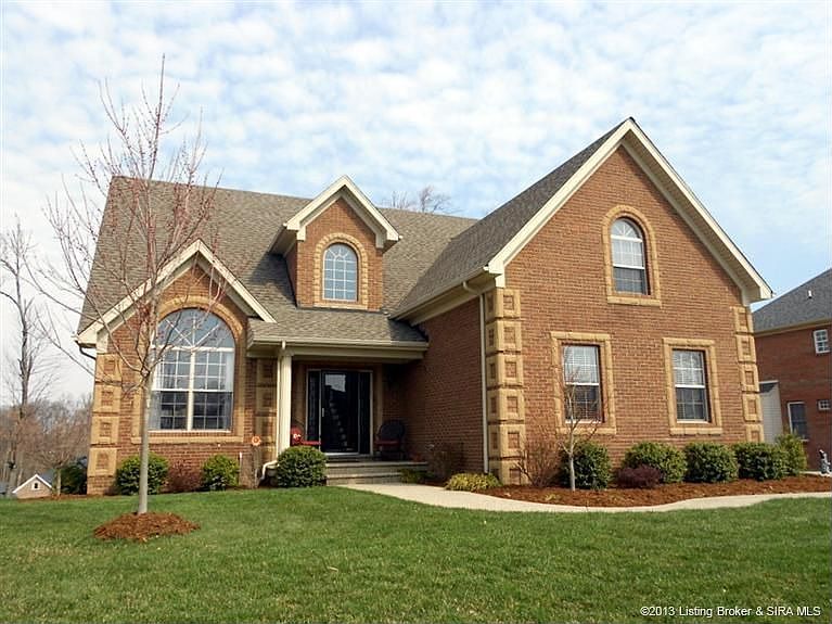 This unique 2-story home has 4 bedrooms, 3.5 bathrooms, 2 laundry rooms with a full, finished walkout basement in over 3,500 sq. ft. of total finished living space! Luxury features include stunning brick and stone masonry, vaulted ceilings, wainscoting, hardwood floors, large windows, and a two-story great room with gas fireplace and mezzanine. The first floor master suite has a tray ceiling, private bathroom with double vanity, jacuzzi tub, separate shower, and walk-in closet. The second floor features three bedrooms and a bathroom. The finished lower level has a second laundry room, full bathroom, large finished entertainment space and patio. This home is larger and much different from other floor plans being built in the neighborhood. New homeowner has choice of Silver Creek or Borden schools. Come see this great home today! Seller providing 1 year HMS Home Warranty. If critical, buyer to verify room sizes and square footage. Agent is related to Seller.\n\nInformation Deemed Reliable But Not Guaranteed. Information provided by the Southern Indiana REALTORS® Association, Inc. © 2010 SIRA Multiple Listing Service. All rights reserved. Brokered And Advertised By: RE/MAX Results Listing Agent: Erin Hubbard