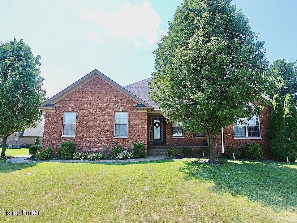 BEAUTIFUL SUNSETS FROM YOUR DECK overlooking the pond are just one of the many features offered in this 4BR/3BA ranch w/mostly finished walkout basement located in the sought after Yorktown Park neighborhood not too far from Silver Creek Schools. New dimensional shingle roof just installed in September 2021. The main floor is 1923SF featuring cathedral ceilings, see through gas fireplace, plank flooring installed in the last two years, fresh paint/neutral modern decor and a formal dining room w/tons of natural light. Spacious eat-in kitchen w/island has granite countertops, a pantry and includes all stainless steel appliances. SPLIT BR floor plan with privacy for the main bedroom on the opposite side of the house from the other main floor BR's. BIG bathroom w/jetted tub, dual vanities, a stand-up shower and nice size walk-in closet. Finished walkout basement includes a massive large family/game/office room, has 9' ceilings in most areas, 4th BR has a closet but no window (3rd shift people would love this BR), a full bath and unfinished area offer loads of storage space. Walkout to patio/fully fenced backyard and a really nice view that's hard to find in this location at this price. Come see it ASAP!.