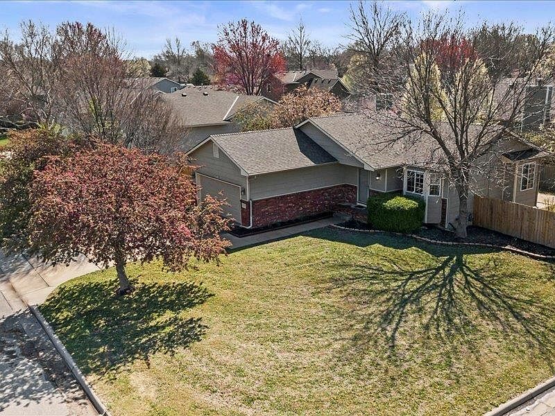 Situated on a peaceful street in the Maize School District, this home offers a blend of comfort, and functionality. The sunken entryway welcomes you into a bright and open living room, featuring a bay window, vaulted ceiling, and a ceiling fan, creating a spacious and inviting atmosphere. Adjacent to the living room is a nice dining area with another bay window and a patio door, perfect for enjoying meals with family and friends. The fully applianced kitchen offers a lazy susan, a boxed-out window over the sink, a pantry, and a wood floor, providing ample storage and workspace. The master bedroom is a peaceful retreat, boasting a large walk-in closet, a ceiling fan, hard-surface flooring, and an attached bath with a 3-foot vanity, a medicine cabinet, a linen cabinet, and a shower. The main floor's second bedroom also features a nice-sized walk-in closet. Completing the main floor is a hall bath with a 3-foot vanity, a medicine cabinet, and a tub/shower. The basement offers additional living space, with an L-shaped family room featuring a brick-faced gas fireplace, a daylight window, and a stained concrete floor, creating a cozy and inviting atmosphere. The large basement bedroom boasts a daylight window, a ceiling fan, and a stained concrete floor, while the bathroom offers a 3-foot vanity, a medicine cabinet, and a stained concrete floor for added convenience. The garage is extra deep (19x25.5) and includes an opener. Additional features of this home include a new roof in 2019, providing peace of mind for years to come. Don't miss the opportunity to make this wonderful home yours!