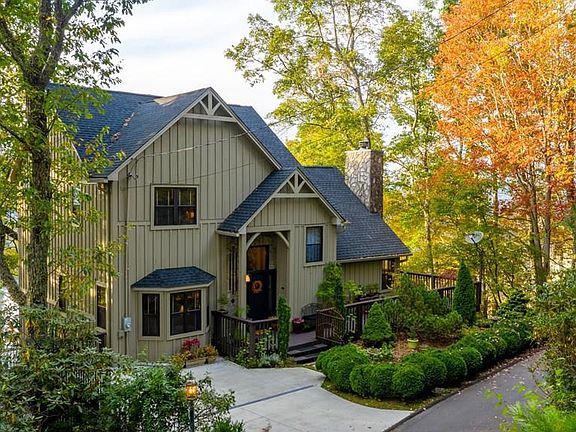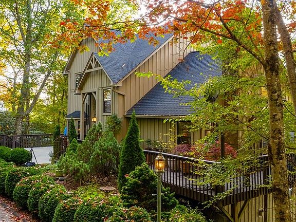 Unsurpassed, panoramic view of Lake Glenville and the mountains beyond to the Tennessee line at the crest of the Smoky Mountains (about 75 miles) from this charming cottage-style custom home. Separate entry area with a two-story high ceiling. The great room has tongue-and-groove ceilings and a wood burning stone fireplace. The main level has oak flooring throughout. The adjoining dining area is open to the huge view and opens to the upper deck. Kitchen is partially separated and has granite counter tops, stainless appliances, and breakfast nook with the view. and a large pantry. The master bedroom is there along with the bath which has a garden tub and large shower. The library/study, with bookcase, is upstairs along with two guest bedrooms and bath. The lower level has the family room with vented gas, stone fireplace, oak floors and built-in entertainment centers, plus an interior greenhouse room, a bonus/craft room, and wine nook, plus an over-sized laundry room. Overall, the house has two levels of large wrap-around decks. It's located in a small close-knit gated community only 15 minutes from Cashiers and all that it has to offer: festivals, shopping , golf, hiking, boating, restaurants, and so much more. It is just a fun place to live!!