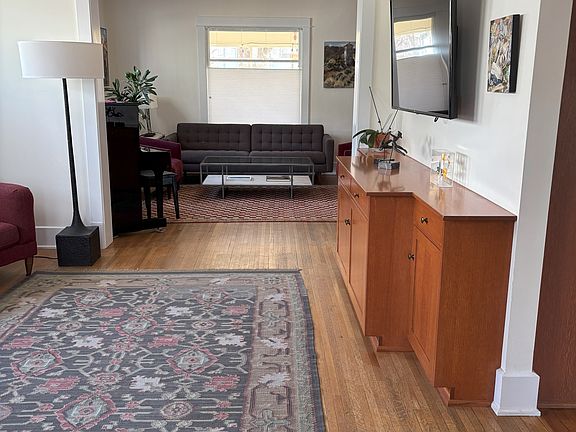 Gracious 4 bedroom 1914 American foursquare house for rent in the quiet Longfellow neighborhood, just one mile from downtown Iowa City. This classic home has been well-maintained by the same owners since 2004. 1,944 square feet of living space, plus basement for storage. Four bedrooms with ceiling fans, laundry and full bath upstairs. On the main level you will discover a remodeled kitchen, office with built in features, dining room and living room, with oak cabinets and built-ins throughout. Kitchen features exposed brick, quartz countertops, and new stainless steel sink with RO drinking water tap; all appliances are stainless steel. Hardwood floors throughout the house, except for tile in the bathrooms. Geothermal heating and cooling. Large fenced-in backyard with garden, raspberries, cherry and apple trees, and shade trees. One-car garage with space for additional off street parking in the driveway. You are just minutes away from schools, bus stops, parks and shopping. This home can be rented as furnished or unfurnished. Tenant is responsible for all utilities, lawn care and snow removal. Contact manager regarding pet breed restrictions.