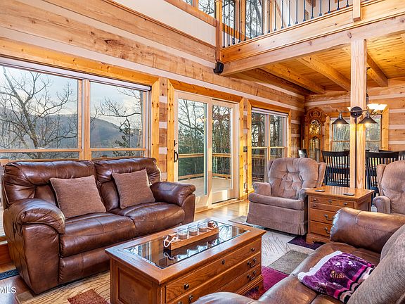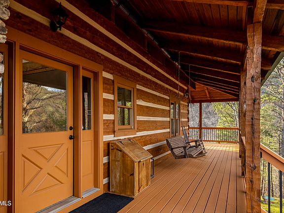 Experience the breathtaking 360 deg. views of the Great Smoky Mtns Nat'l Park from this custom built log home. This mountain top estate consists of two 5 acre tracts. Relax and enjoy the splendor of the mountains on 1,800 sq. ft. of wrap-around, covered porches and upper and lower decks. Open floor plan has soaring cathedral ceiling with exposed beams. The kitchen features a microwave with convection cooking, ceramic smooth surface cooktop and double ovens. Quality thru-out with unexpected features such as dual fuel heat pump, generator backed-up electrical service and a detached 2 car garage/workshop in addition to the 1 car basement garage. The bonus 5 acre tract has an excellent building site with spectacular mtn views of the Nat'l Park. Home has always been a primary residence but vacation rentals are permitted in the community. Investors will appreciate the option of building a second home on the adjoining 5 acre tract.