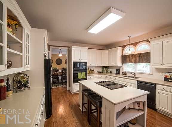 • Kitchen Features: Cabinets White, Island, Breakfast Area, Pantry, View To Fmly Rm, Counter Top - Solid Surface