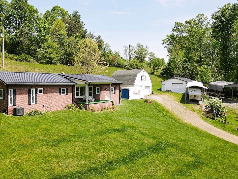 Escape to your very own private oasis on this 2.3-acre property nestled in the serene countryside surrounded by nature and tranquility. The property includes not one, but two large garages and two carports, providing ample space for all your vehicles, boats, and recreational vehicles. Bonus storage space above the garage. The covered deck and paver patio offer the ideal setting for outdoor entertaining and dining. This spacious home features 3 bedrooms and 2 and a half bathrooms, including an ensuite. In the family room a cozy gas fireplace is perfect for chilly nights. Updates include, newer heat pump, metal roof, windows, some flooring and kitchen.