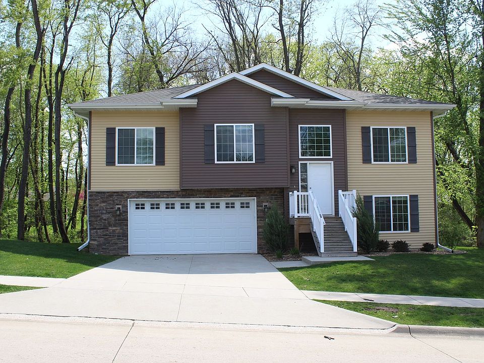 Spacious split-foyer with finished walk-out lower level. 3 bedrooms, 2 baths, and laundry on upper level with additional full bath and 4th bedroom in lower level. Deck off kitchen/dining area. Fireplace and large 2-stall garage. Master has private bath with dual vanities and large closet. Kitchen features stainless appliances and pantry. Main floor laundry with appliances included. Close to downtown, campus and bus routes.