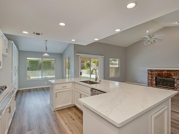 GATED, GRANITE BAY ONE-STORY NEWLY REMODELED! Quiet Hillsborough setting, featuring 2,222 SF, 4 bedrooms, 3 FULL baths & 3-car garage. NEW appliances, quartz counter tops, subway-tile backsplash, large island w/bar-style seating, cabinet pulls, faucet, SS farm-style sink, vinyl wood-plank flooring, new can lighting added, new breakfast-nook chandelier, two-toned custom paint, open-concept kitchen, breakfast nook & family room that offers a vaulted ceiling and a gas fireplace and opens to kitchen w/large center island. All cabinets in the home have been painted. Master suite offers vaulted ceilings & access to private backyard. Remote guest suite with access to full bath is perfect for guests. Oversized front living space offers bay-style window feature with window seat. Private backyard has a covered patio, masonry stone wall w/raised planter beds, citrus tree, mature landscaping and an iron-gated side yard, perfect for a dog run. Parks & walkways close by along with local amenities.