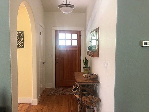 Privacy on 5 acres with Craftsman style one level home. Covered front deck, views, garage, established garden area, paved gated driveway. Living room with window seat and bookshelves, dining area with door to deck for BBQ, kitchen with granite counter tops, laundry room. Master suite with door to deck, walk in closet and ensuite bath. Solid oak flooring, granite, painted wood trim, vaulted ceilings, arched doorways and charming character throughout! Close to town, backs up to BLM. Immaculate!!
