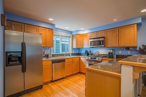 Located just a half mile from Green Lake. Open living space with chef's kitchen. Granite countertops surround the stainless steel appliances offering gas stove top cooking. Maple cabinets and hardwood floors finish out the high quality finishes. Efficient hot water, gas heat including gas fireplace. Cat-5 wiring, security system. Deck and fenced in courtyard. Nearby transit made easy with metro stop just a block away. Quick routes to 99 and I-5. Restaurants and shops nearby. Has garage.