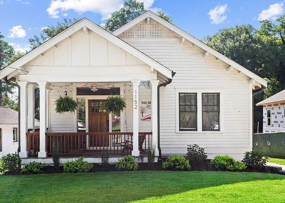 Welcome to 1152 Oakland Drive an impeccably renovated 1922 Craftsman bungalow that blends timeless architectural character with thoughtfully updated interiors, all in one of Atlanta's most rapidly growing neighborhoods. Step onto the welcoming covered front porch and through the original-style Craftsman door, framed by sidelight and transom windows, into a bright and airy living space. The main living area showcases warm hardwood floors, neutral designer paint, and striking exposed wood ceiling beams that anchor the space in historic charm. The kitchen is a true centerpiece designed for both everyday function and stylish entertaining. It features a spacious center island with bar seating, stainless steel appliances, white shaker cabinetry, sleek hardware, contemporary lighting, and an abundance of natural light. An open-concept dining area sits just off the kitchen, perfect for hosting or casual family meals. Toward the back of the home, you'll find a full guest bath, a dedicated laundry area, and access to the expansive backyard through a private rear entry. The primary suite offers a peaceful retreat with double closets, oversized windows, and a spa-like en suite bath featuring marble tile, dual quartz vanities with a custom linen tower, a glass-enclosed shower, and a private water closet. Two additional bedrooms offer flexibility for guest space, a home office, or creative use, all filled with natural light. A daylight basement provides generous storage and exterior access, while a private driveway in the rear allows for convenient off-street parking. Located just minutes from the Atlanta BeltLine, Lee + White (home to staples like Monday Night Garage, Boxcar, Hop City, and ASW Distillery), and green spaces like Perkerson Park and Rose Circle Park, this home offers unbeatable access to breweries, food halls, and vibrant community amenities. You're also close to both the Oakland City and West End MARTA stations, making commuting a breeze. Move-in ready and ideally positioned in one of Atlanta's most exciting intown neighborhoods, 1152 Oakland Drive is a perfect blend of history, comfort, and location.