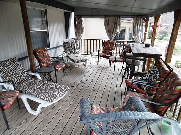 Nice place to relax, fish, or just watch the boats ride by. Super wrap-around proch with end deck covered and a pier on the water with a stair walkdown to enter your boat. Fenced yard. The shop is wired. Also, another metal shed for storage. A Ski Boat that you may want to keep there too. Too much to describe. Come see!