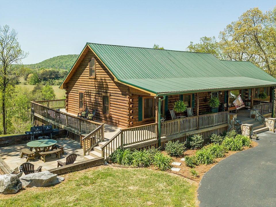Rocky River BLISS with PRICELESS VIEWS of river, rolling hills and mountains! Log Cabin LIVING at its BEST! 4 ACRE LOT, 400' water frontage, Wrap-around porch, Incredible Master Suite, Media Room, 5 BR's, 3 FULL Baths, STUNNING Kitchen, Concrete Countertops, Vaulted Ceilings, Community Boat Ramp and Boat Storage. 1.5 hour drive from Nashville.