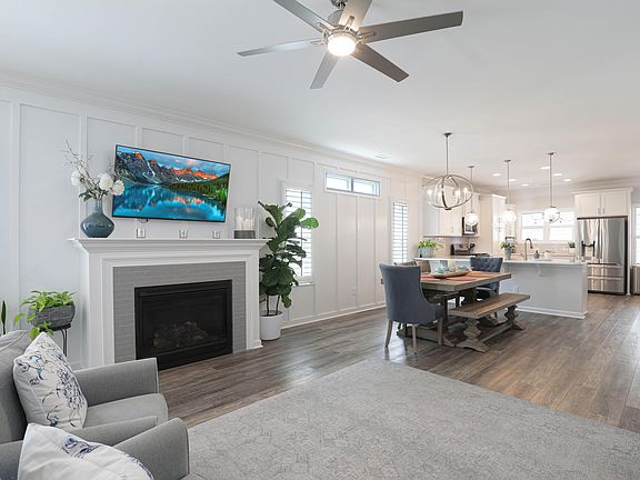 - Breakfast Bar, Ceiling Fan(s), Crown Molding, Living/Dining Room Combination, Open Floorplan, Quartz Counters, Recessed Lighting