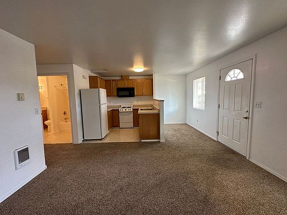 This cute 1 bedroom 1 bath apartment is in a single level 12 unit apartment complex located next door to a big grassy park. It has washer dryer hookups in the bathroom, an apartment size stove with a full size fridge and over the range microwave. There is NO dishwasher. Water, Sewer, Garbage, is included. You have 1 designated parking space. It is a 1 year lease. Renters insurance is required. NO smoking. NO PETS. No Smoking, No Pets. Only 1 designated parking space. Washer & Dryer hook-ups only.