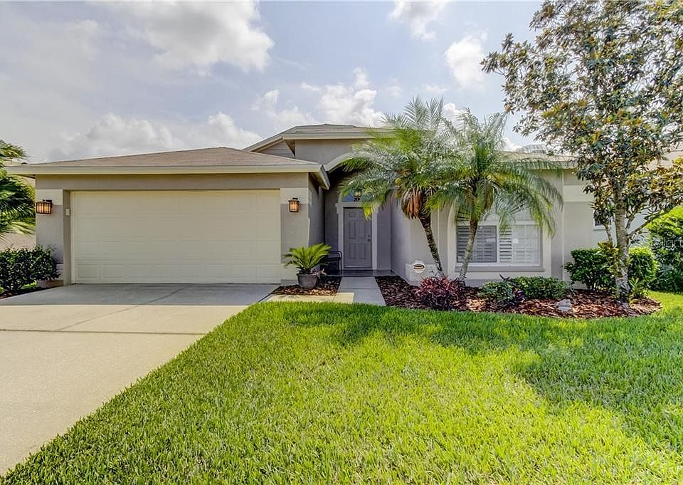 Don't miss out on this beautiful home in one of Meadow Pointe's gated communities. This 4 bedroom/ 2 bath home w/2-car garage features spacious rooms and many upgrades for you to enjoy. NEW ROOF in May 2020. Kitchen comes with newer stainless steel appliances, breakfast bar, and a dinette for you to look out at the pond while enjoying your meal. Master bedroom has a large walk in closet with an upgraded master bath. There is no carpet in the home...just hard wood and ceramic tile in the kitchen and baths. Grand room includes a view of the pond. Enjoy a relaxing evening in your covered/screened lanai with serene pond view. Nearby Meadow Point 3 clubhouse has many amenities including pools, walking paths, tennis courts, basketball courts, a fitness room, and multiple club houses. Zoned for fantastic schools, all nearby. The Shops at Wire Grass Mall and the Outlets are nearby, as well as access to I-75 and I-275, making this an easy commute to the airport, downtown, and gulf beaches! Impeccable home with minimal maintenance makes this home great as an owner occupied home, an investment opportunity, and great for rental income. Home warranty Included!!!