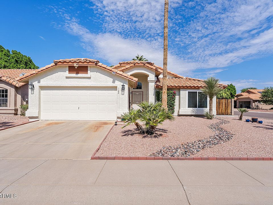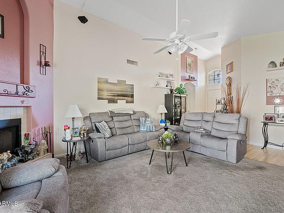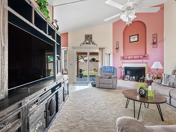 Welcome home to this beautifully maintained 3-bedroom, 2-bath gem in the heart of Chandler! Featuring soaring vaulted ceilings and abundant natural light, this inviting home boasts a spacious living area with a cozy fireplace and a bright kitchen with modern appliances, ample storage, and newer flooring. Enjoy energy efficiency with dual-pane windows, solar panels, and a newer A/C unit. The backyard is a private retreat—lush grass, mature palms, and a covered patio perfect for relaxing or entertaining. Nestled in a quiet neighborhood near parks, shopping, and top-rated schools, this home offers both comfort and convenience in one perfect package.