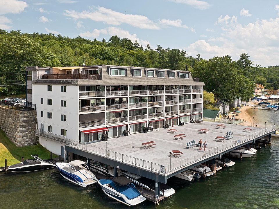 Weirs Beach, NH 03246- WOW... You are going to love this opportunity, a 620+/- sq ft, 1-bedroom/1-bath, corner unit condo at street level with incredible lake and S/W views and, today you have a slip for a 21 foot boat. You will notice the benefit of the end unit as you feel the natural light that you get in the bedroom and the living room with the extra windows. Imagine for a moment, you are enjoying your morning coffee on your private deck overlooking the Weirs Channel watching the boats parade by or you have gotten up early, walked downstairs to your boat so you can get an early water-ski before the lake gets busy. You are going to love owning this condo. If you need sun in your life, at this location, you get sun a good portion of the day which, in the winter helps to create the cozy feel on a chilly day. Like to ski? Gunstock is less than 15 minutes from this location. There are plexi-glass window panels for you to put up in the winter that will help expand your living space. You will see when you get here that this condo is in great condition, the flooring is newer, the kitchen and bath have been redone, the appliances are newer and the electrical service has been updated. If you are thinking investment, you can not rent this unit for any time less than 30 days. This purchase will be for you to enjoy. This family has owned this condo forever and now it's your turn to start making memories.
