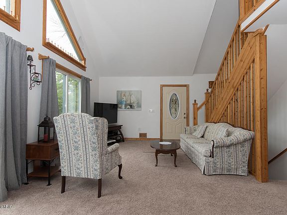 Nature lover's dream on beautiful Pine Lake.This quiet spot features a large yard and 109 ft of frontage. Chalet home offers an open floor plan with slider and windows for a wonderful view. Kitchen cabinets have been freshly painted, new counter tops, backsplash and flooring. Living room and master bedroom have new carpet. Master bedroom is spacious with a large walk in closet. Upper level loft for bedroom or office. Enjoy the lower level walk out family room for entertaining and a third bedroom and full bathroom. This home has a large deck and large patio for all your family gatherings. Two car garage with storage room underneath.