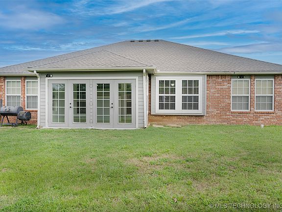 Brookfield Crossing at German Corner-4 Bedroom, 2 bath home with scenic pond views from your front porch in the highly sought after Owasso School district! This home features granite countertops, stainless steel appliances, a breakfast nook, a formal dining room, vaulted ceilings, a split plan for the bedrooms, AND the Refrigerator stays! The home has tile, carpet, and laminate flooring. The roof is brand new as of 8/21/25. So come take a look!
