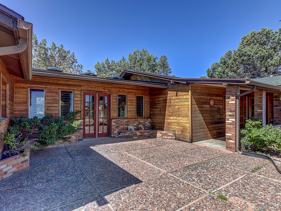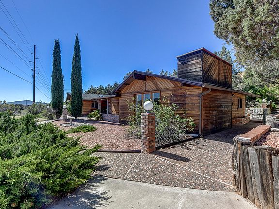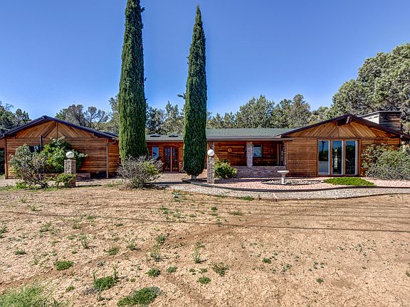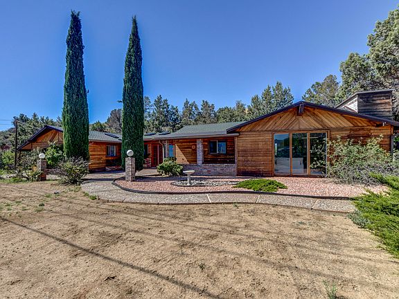 One of a kind property, ready for new purpose! Property does need work, the value is in the location, size and potential! NO HOA! A true Ranch home on 1.55 acres, located off Hwy 69. This property would be a great commercial site, a home/business operation, or a family getaway. Tucked behind the mature trees, the Redwood sided home has a lovely courtyard and several patio spaces. Living Room has beamed and vaulted ceiling, rock fireplace, and opens to the kitchen. Family Room is like none other, so warm and inviting, with an indoor BBQ and access to the back patio. Fabulous for entertaining. Detached 2 car garage, fruit trees, new roof in 2018, new skylights 2019, new carpet and interior paint. Mountain Views! City water, Natural Gas. Estate Sale, sold AS IS and priced accordingly.