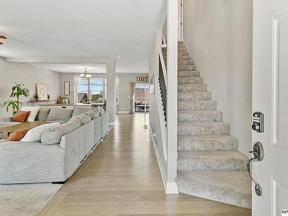 Perfect home-perfect location! Almost new two story is super clean and well taken care of. Gas fireplace on the main and electric in the finished walk out. The kitchen is a dream to cook in with vast counterspace and a huge walk-in pantry. There is a darling drop zone off the garage and a half bath. Large dining room with sliding glass doors open onto a beautiful deck. Upstairs, double doors open onto a luxurious primary suite with an indulgent bathtub, large shower and private water closet. The enormous walk-in closet opens into the laundry room. Another full bathroom and 3 bedrooms open off the spacious hallway that overlooks the entry. Finished walkout has a large rec room, wet bar, mini fridge, and bathroom while still leaving room for storage. Sliding doors lead to beautiful patio with gas firepit! All appliances, mounted televisions, patio furniture included! You will not find more house or more amenities for this price, so hurry!