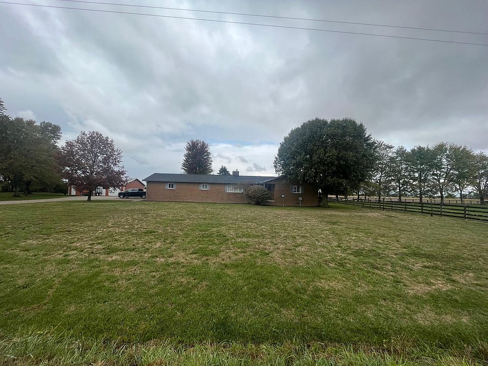 Custom built home all brick house 2 car attached garage. Just under 2 acres with approximately 1 Acre wooded fenced pasture field. 30'' X 40' pole barn with concrete floor, electric, 2 garage doors and 1 access door. Total house, pole barn and deck freshly painted 2024. Updates include brand new furnace and AC 7/24 new front porch 5/24. Roof was re[laced 2017. Chimney from the roof up completely rebuilt with tuck pointed and sealed chimney cap. Brand new fireplace flue with new roof vents and flashing 2024. New well pump and wires 2024. HUGE BONUS has NATURAL GAS and wood burning steel insert fireplace that has a blower motor that blows through the vents of the house with a 3 speed fan. 2.1 miles to West fall 2.5 mile to Middle and High School 5.2 Miles to Deer Creek.