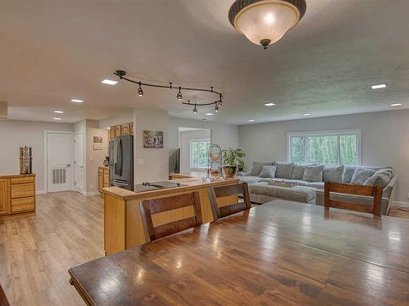 Spacious & Gracious & close-by the Lake. This well-appointed & updated home has over 3500 sq ft with 3 main floor bedrooms & 2 main floor bathrooms. Thereâs a 8" concrete foundation which allows a full finished walk-out basement with 3 additional non-egress bedrooms & 2 more bathrooms. Spacious open kitchen with ample cabinets leads to a large covered deck that overlooks the park-like landscaped 1.3 acre lot w/water feature & keystone walls which borders State owned land. Separate oversized 3-car garage!