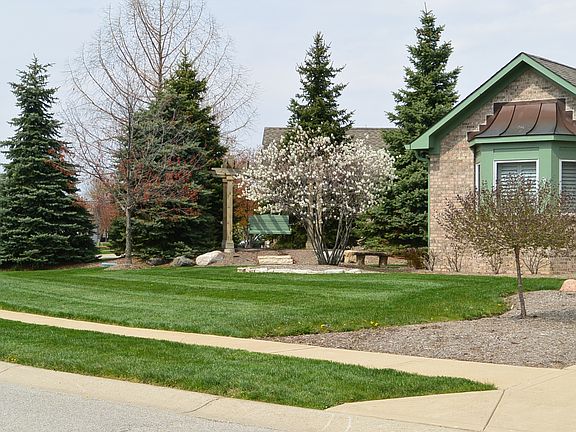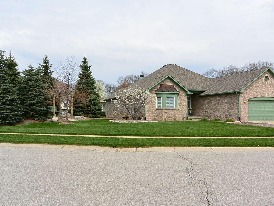 Move right in this fabulous custom blt ranch w/lovely full brick exterior. Beautifully landscaped lot in Applewood. Full of top features & well maintained. Compliments include solid oak doors, molding, & trim. Custom design maple office wall cabinets, crown molding. 10' vaulted ceilings, upgraded Pella windows w/plantation shutters. Great room equipped w/corner fireplace. Warm up in your cozy sunroom. Gas line for outdoor grill. Lawn care & snow removal provided in low maintenance community!